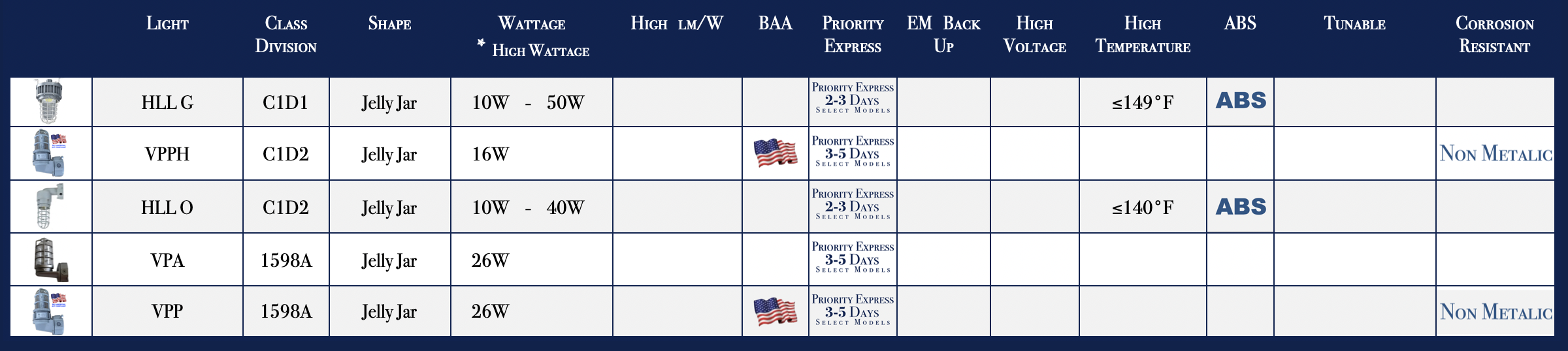 JELLY JAR & BUNK LIGHT C1/D1 & C1/D2, Wet Location